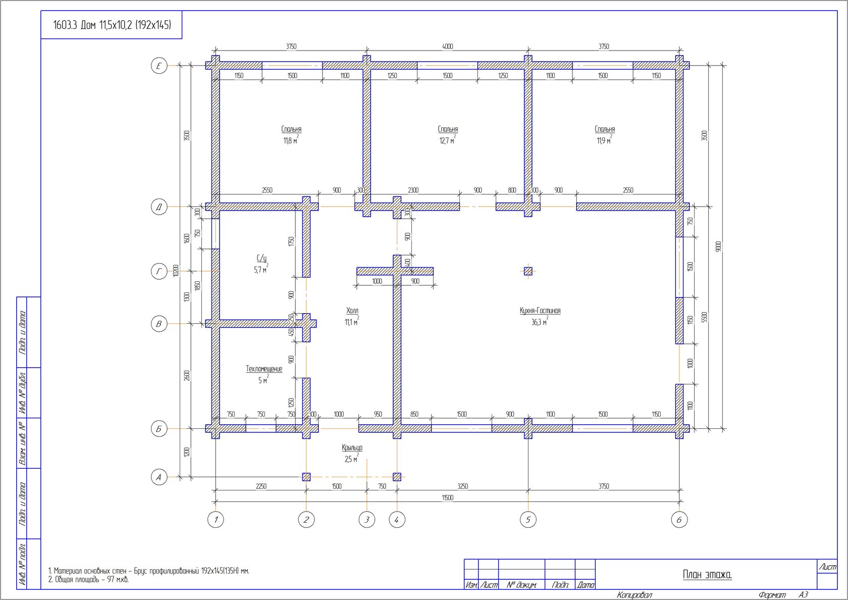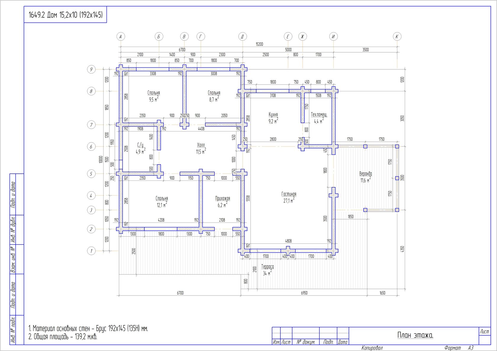 Одноэтажный дом из профилированного бруса 192х142мм В стоимость входит:
