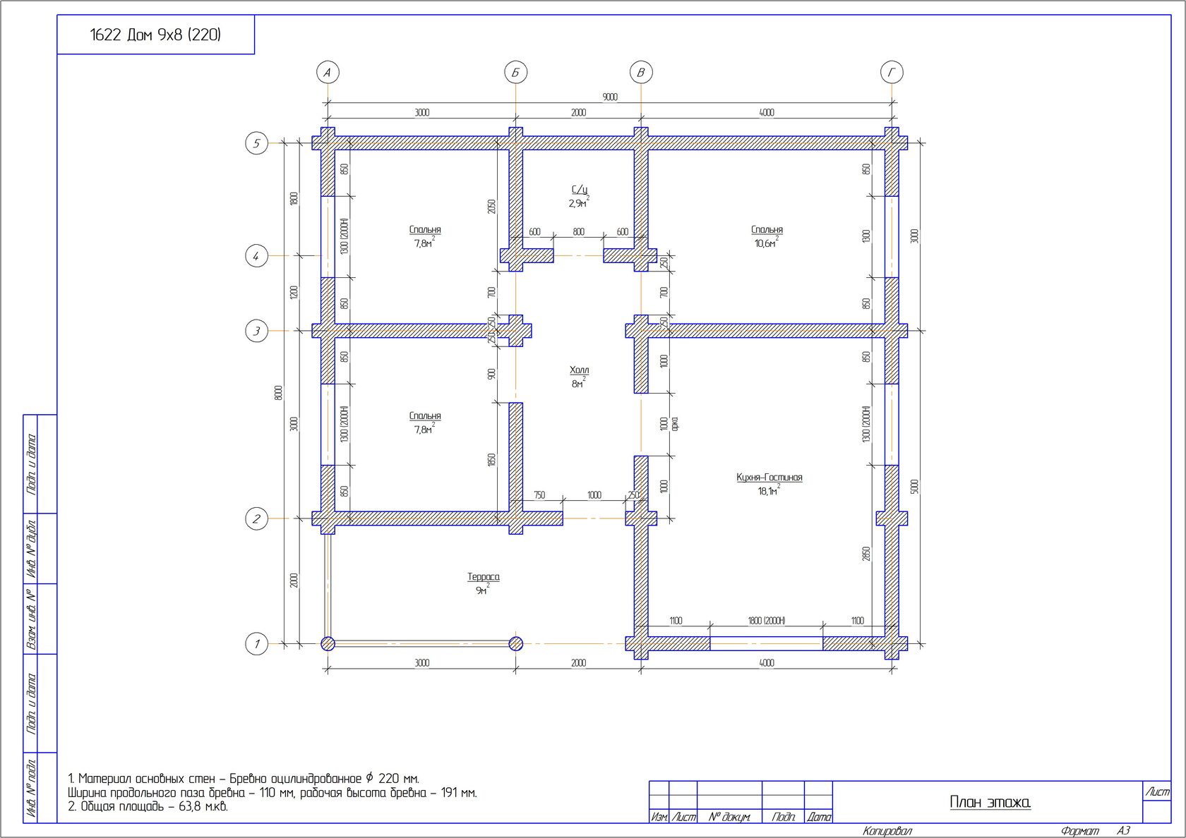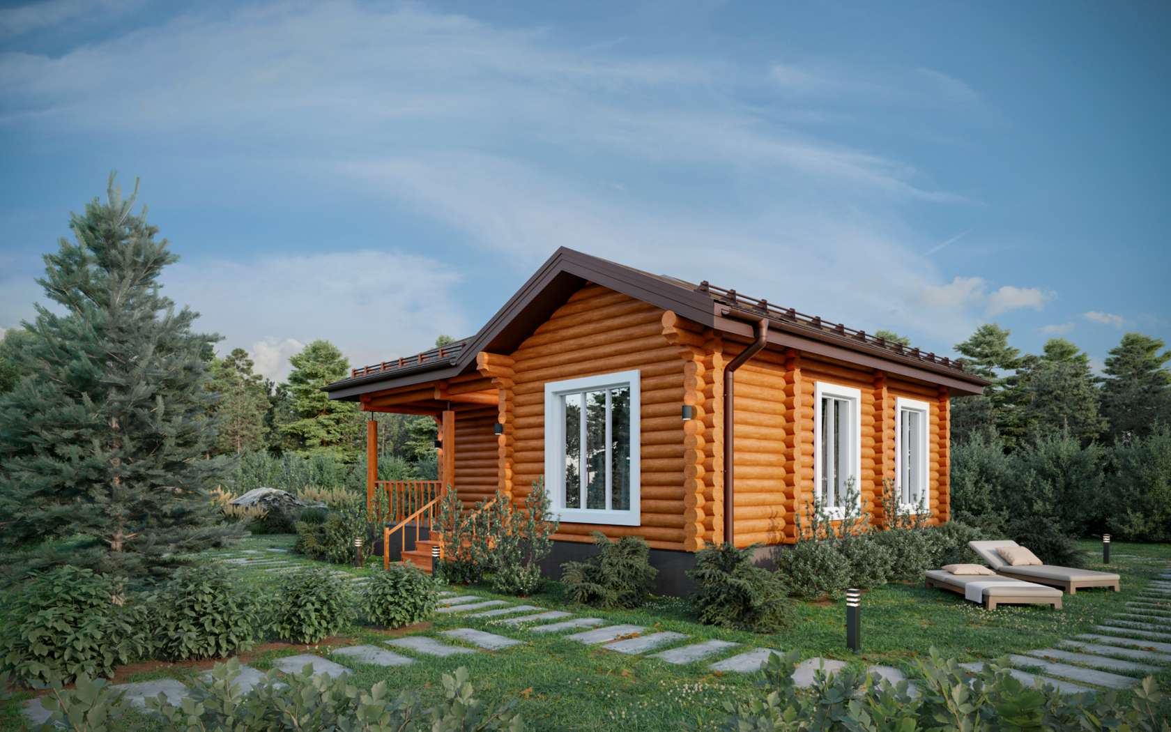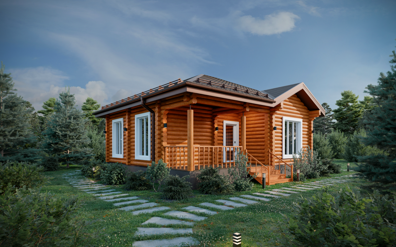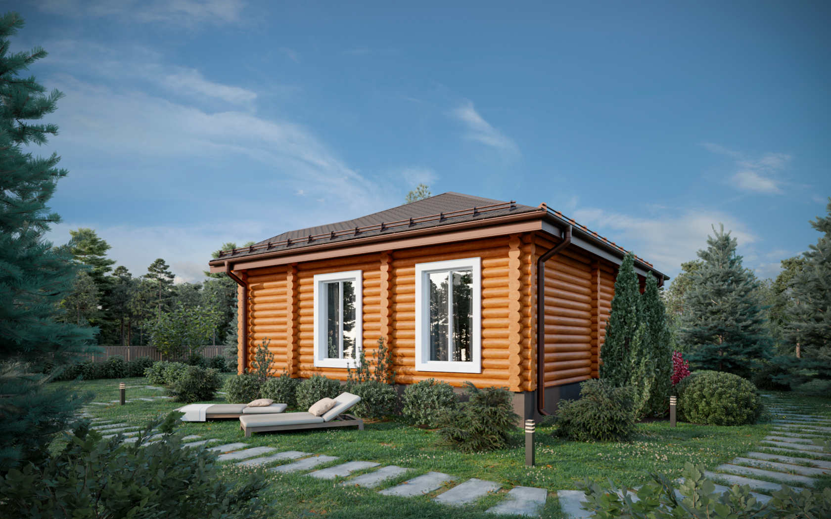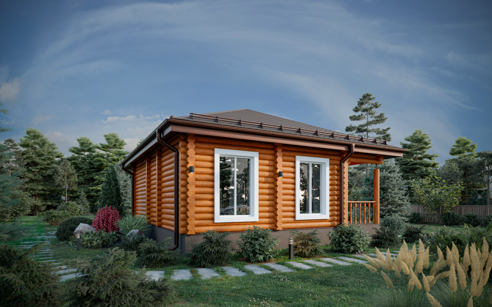 Одноэтажный дом из оцилиндрованного бревна 220мм диаметра В стоимость входит: