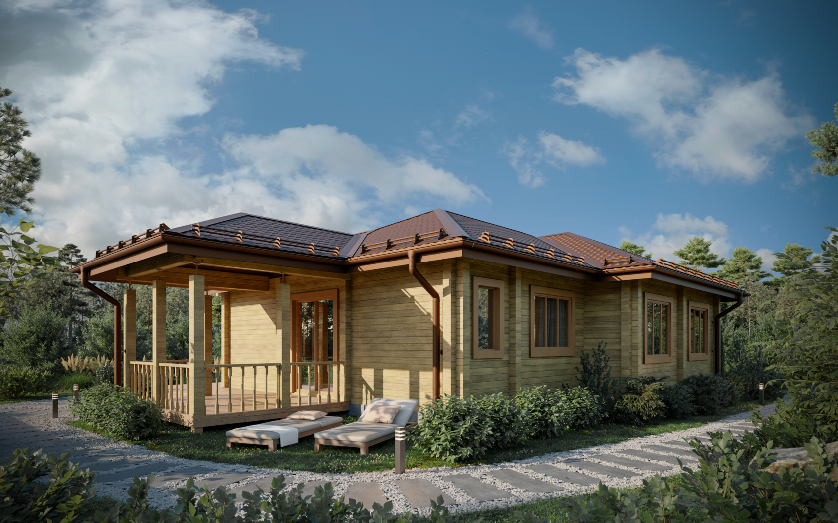 Одноэтажный дом из профилированного бруса. В стоимость входит: